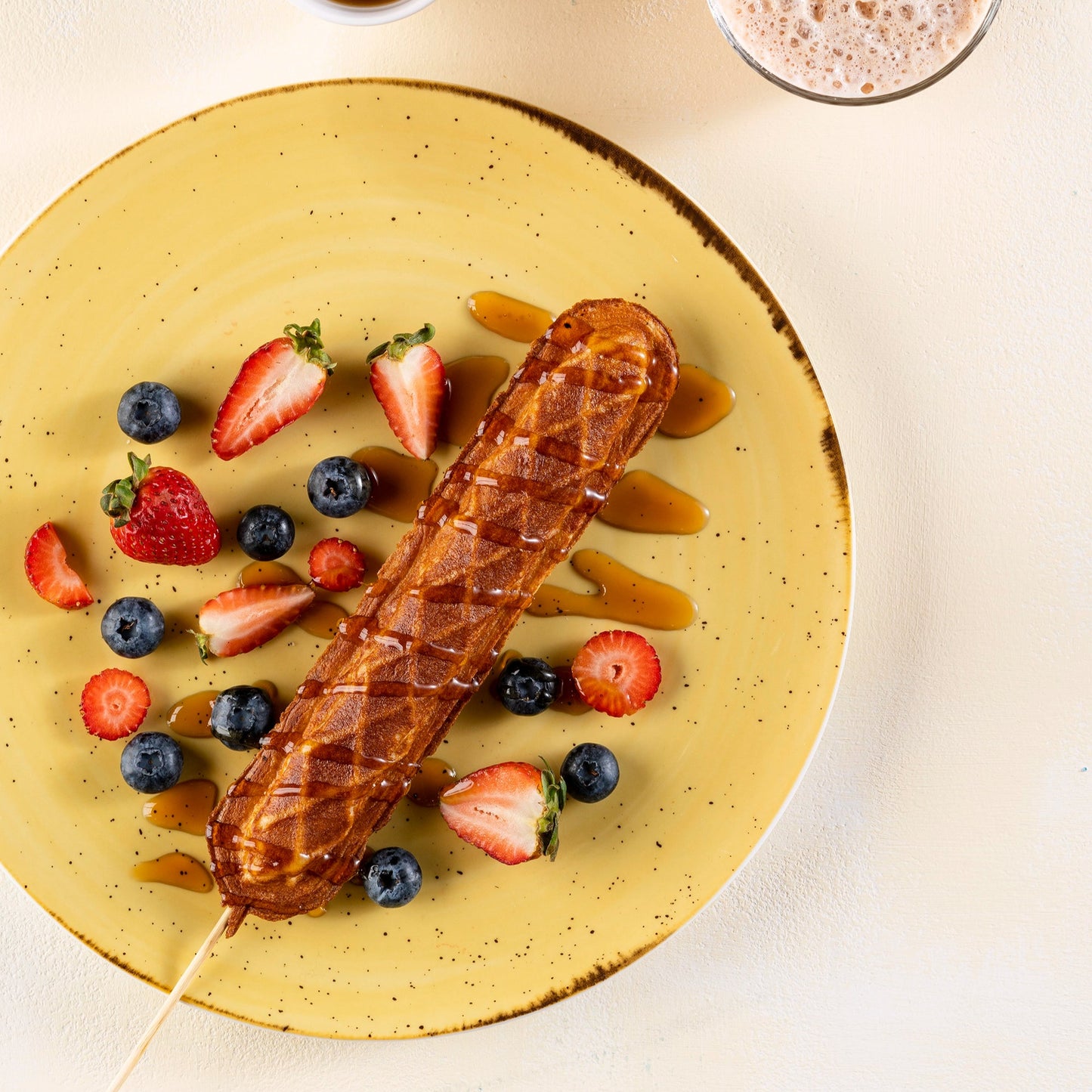 waffle, acompañada de frutos rojos